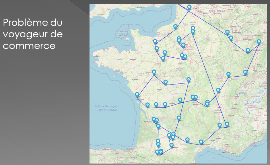 Pour résoudre le problème du voyageur, on peut y consacrer quelques milliers d’années … ou une fraction de seconde si on a suivi les cours de NSI. On fait tout, même le tracé de son voyage sur la carte !