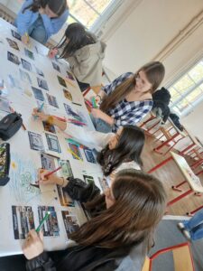 Avant même de nous déplacer physiquement, des échanges et des collaborations virtuelles ont été entrepris entre les jeunes et des affichesont été préparées avant les mobilités et après celles-ci pour être vue au CDI.