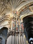 La Galice est une région bilingue dans le nord-ouest de l’Espagne. Comme d’autres « régions » d’Espagne, il y a deux langues officielles: l’espagnol et le galicien. En galicien, on dit Ourense. En espagnol: Orense. Le premier jour, les correspondants ont organisé une promenade culturelle dans la ville. Nous avons visité la cathédrale dont le porche principal a été réalisé par le même maître d’oeuvre que celui de la cathédrale de Saint Jacques de Compostelle: Maestro Pedro au XII°siècle. Certains élèves ont été impressionnés par la polychromie des statues, d’autres par la variété des instruments de musique représentée.
