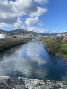 Ourense est une station thermale très ancienne (plus de 2000 ans), c’est pourquoi, après une photo de groupe près de la station thermale de centre-ville « as Burgas » où l’eau jaillit à 60°, nous sommes partis randonner le long des berges du Miño: 5 km à pied qui n’ont usé ni les chaussures ni la bonne humeur. Au bout du parcours: les thermes d’Outariz où certain.e.s se sont baigné.e.s tandis que d’autres ont préféré juste tremper leurs orteils dans les sources d’eau chaude au bord du fleuve. Cette randonnée a permis de tisser des liens mais aussi de prendre conscience de l’importance de préserver l’environnement et de l’impact des activités humaines sur la biodiversité.
