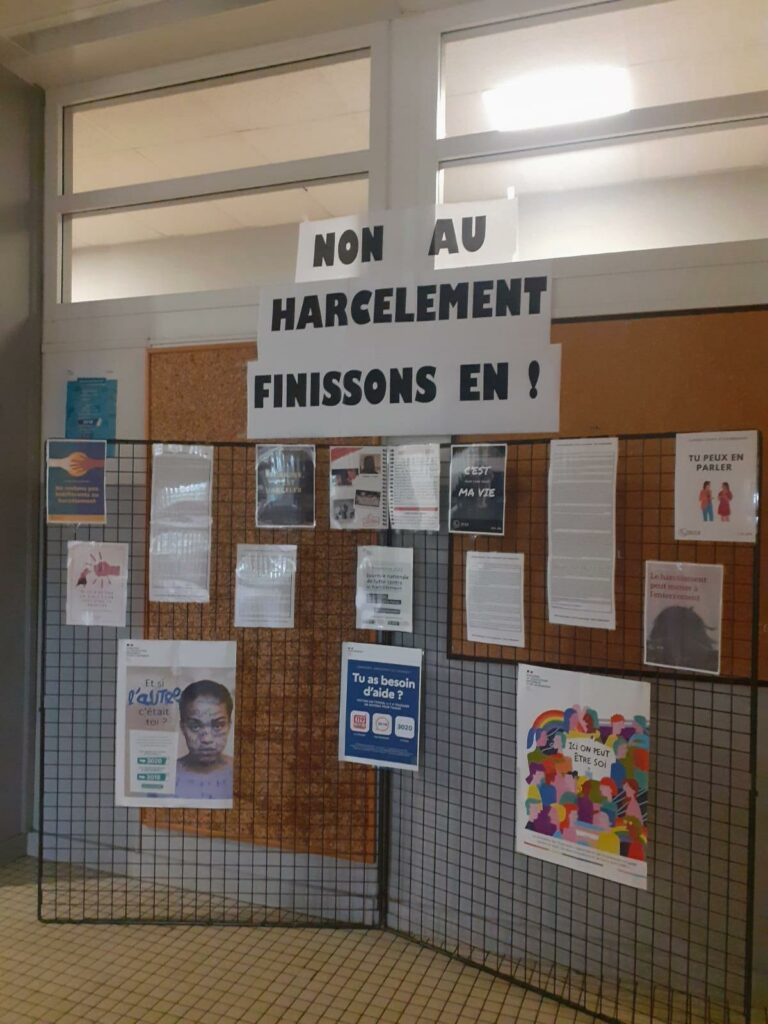 Cette action s’est déroulée dans l’après-midi, les élèves et les personnels étaient invités à porter du VERT, couleur officiellement reprise pour symboliser la lutte contre le harcèlement.