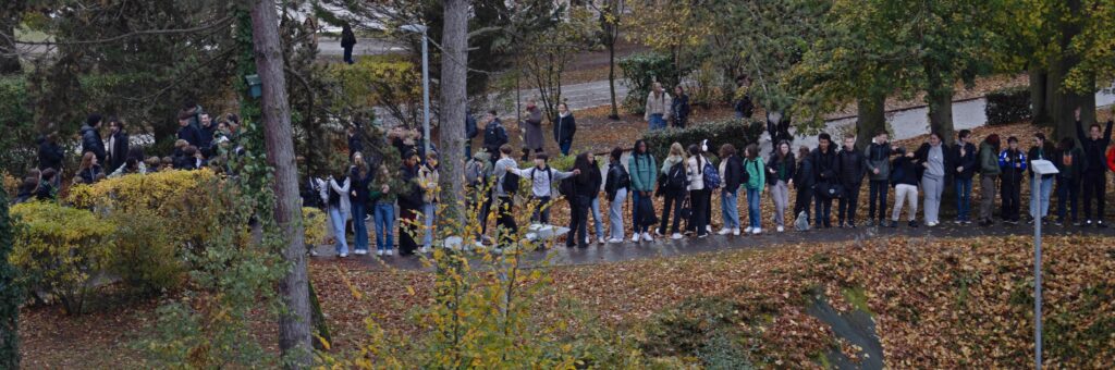 A l’occasion de la journée mondiale de lutte contre le harcèlement le jeudi 9 novembre 2023, les élèves du CVL ont proposé de réaliser une chaîne humaine, unissant tous les élèves, tous les personnels du lycée Pierre d’Ailly symbolisant l’union de tous les élèves contre tous les types de harcèlement.