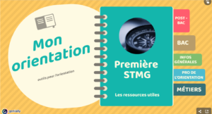 Vous pouvez consulter la boîte à outils spéciale première STMG sur le portail du CDI : https://0600014p.esidoc.fr/site/orientation/outils-pour-mon-orientation/niveau-premiere-stmg