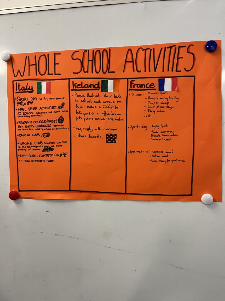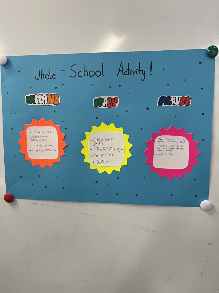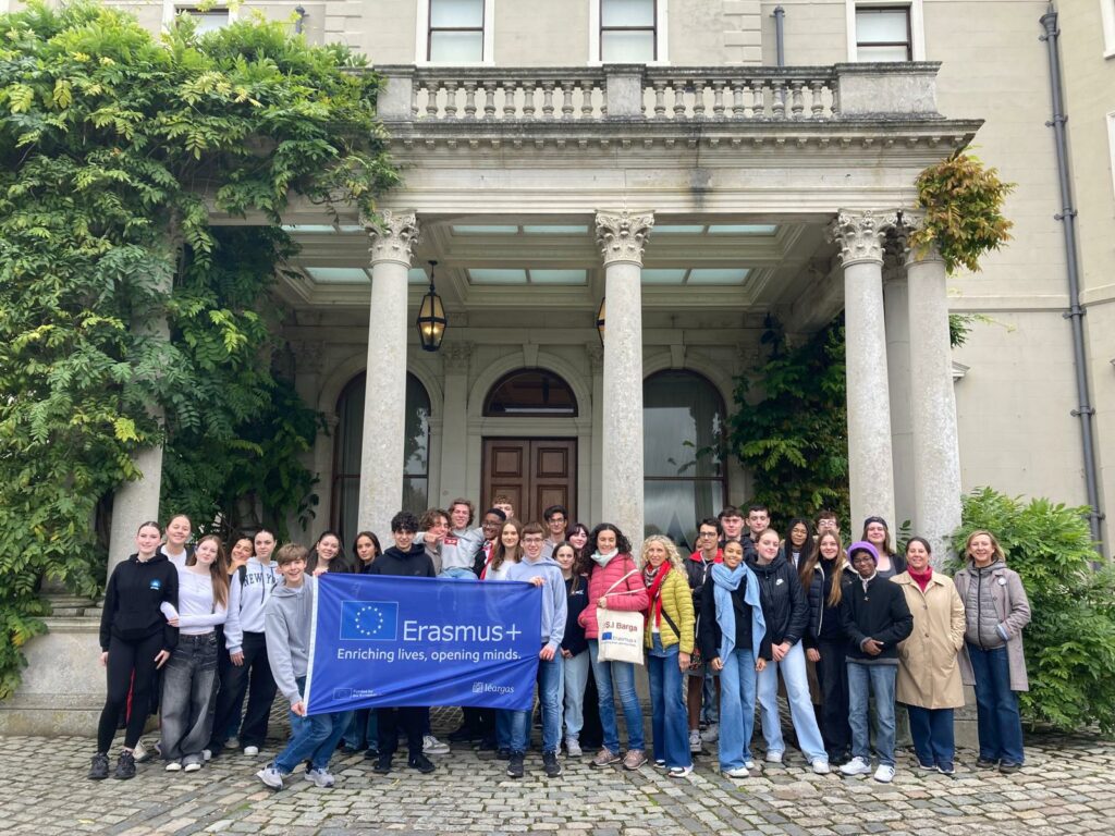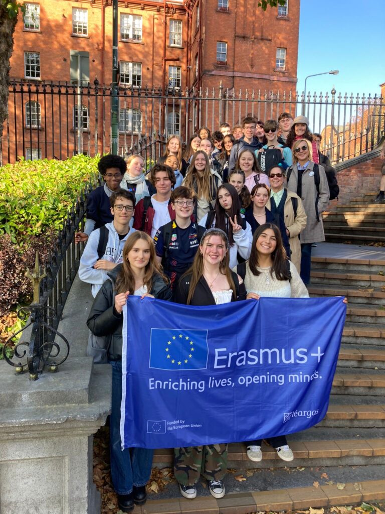 1er jour au Luttrellstown Community College: présentation des participants au programme (Italie, Irlande, France) Ice-breaking workshops – Choix du logo du projet – Visite du lycée – Visite guidée de Dublin, par les élèves irlandais.